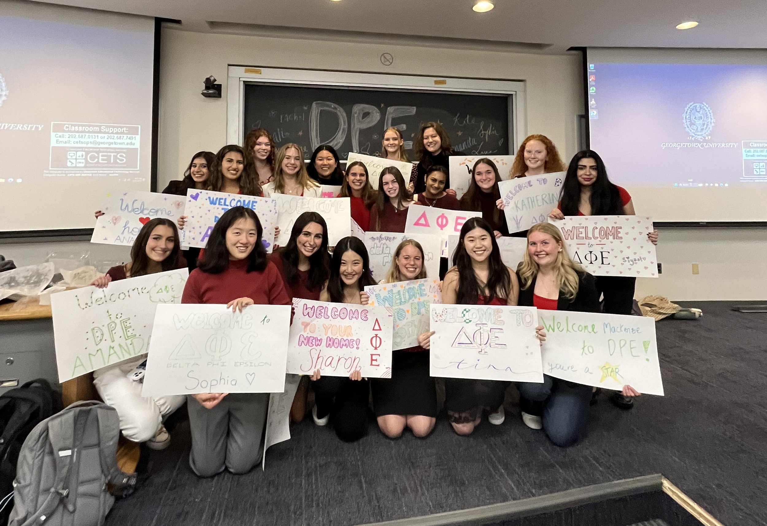 Since our foundation in 1973, the Alpha Chapter of Delta Phi Epsilon Sorority has initiated two new lines of sisters each year. If you have pictures of any missing lines from the 1970s, 1980s, or 1990s, please email dpewebsite@gmail.com.